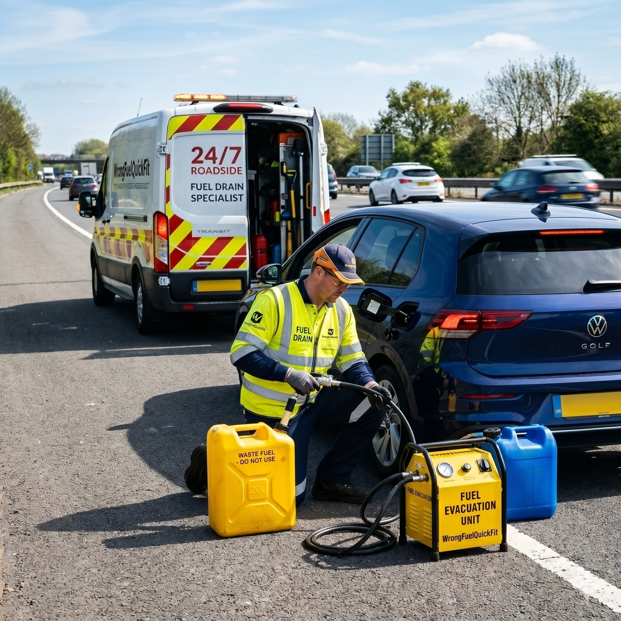 A specialized WrongFuelQuickFit van is dispatched locally to reach you ASAP.