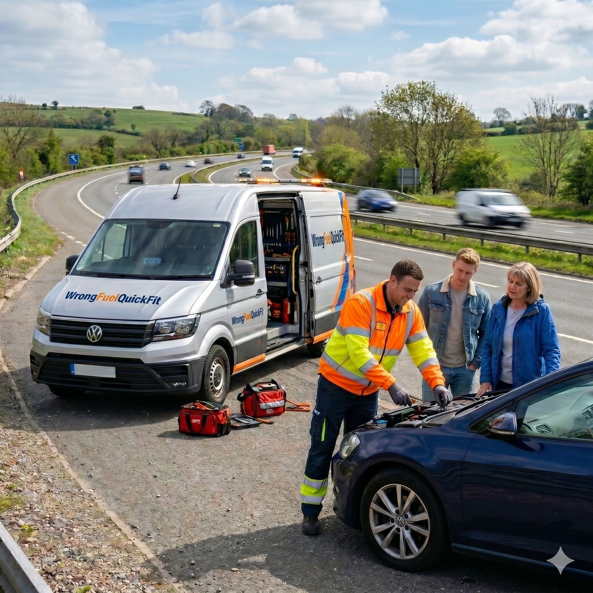 A specialized WrongFuelQuickFit van is dispatched locally to reach you ASAP.